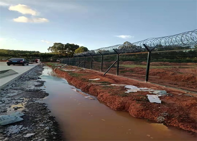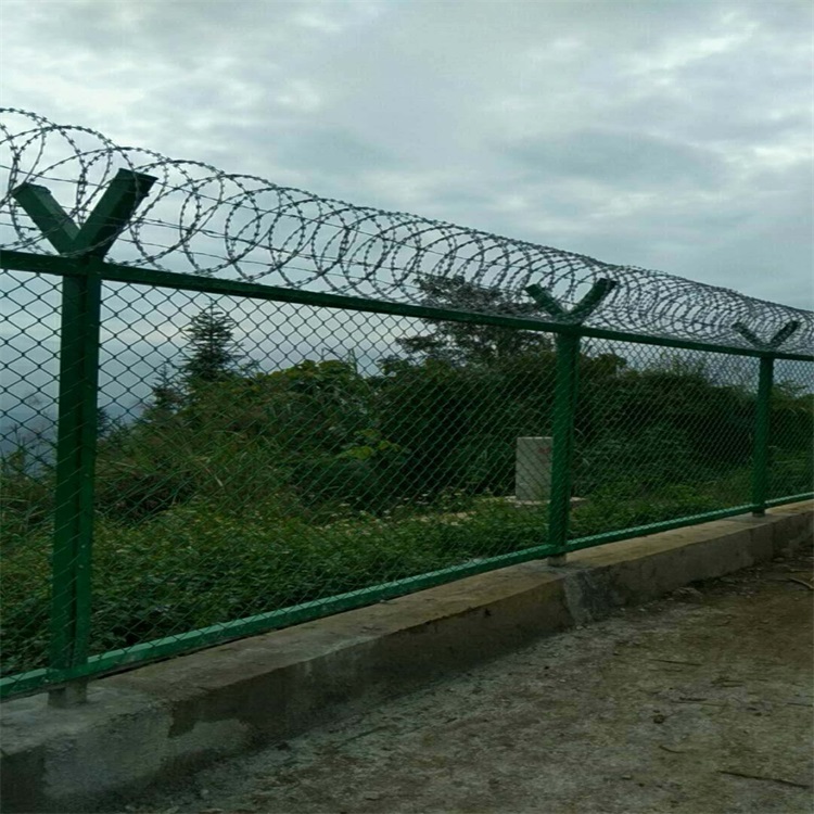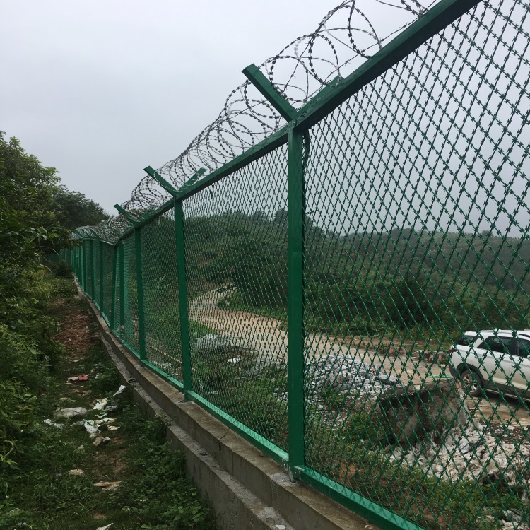 機(jī)場(chǎng)鋼筋圍界就是機(jī)場(chǎng)圍欄網(wǎng)又稱(chēng)作“Y型安全防御護(hù)欄網(wǎng)”,是由V型支架立柱,加強(qiáng)型焊接片網(wǎng),安全防盜連接件和熱鍍鋅刀片刺籠組成強(qiáng)度和安全防御性級(jí)別很高。近年來(lái),被廣泛應(yīng)用在機(jī)場(chǎng),軍事基地等高安全場(chǎng)所。注:如果在機(jī)場(chǎng)護(hù)欄網(wǎng)頂部加裝刀片刺絲、刀片刺繩后又很好的增強(qiáng)了安全防護(hù)性能。采用電鍍、熱鍍、噴塑、浸塑等防腐形式,具有很好的抗老化、抗曬、耐候等特點(diǎn)。其產(chǎn)品造型美觀、花色多樣,既起到圍欄作用,又起到美化作用。由于具有安全性高、防攀爬能力好,網(wǎng)片連接方式采用特制SBS緊扣件,有效防止人為的破壞性拆卸,橫向四道折彎加強(qiáng)筋,使網(wǎng)面強(qiáng)度顯著增加。